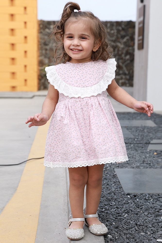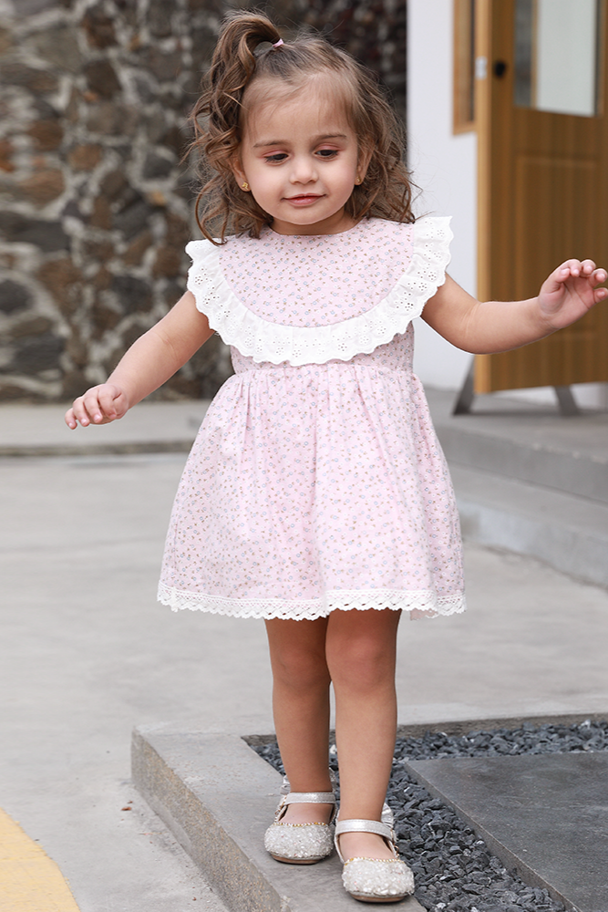 - فستان طفلة لون زهري ناعم يعكس أنوثة الطفولة.