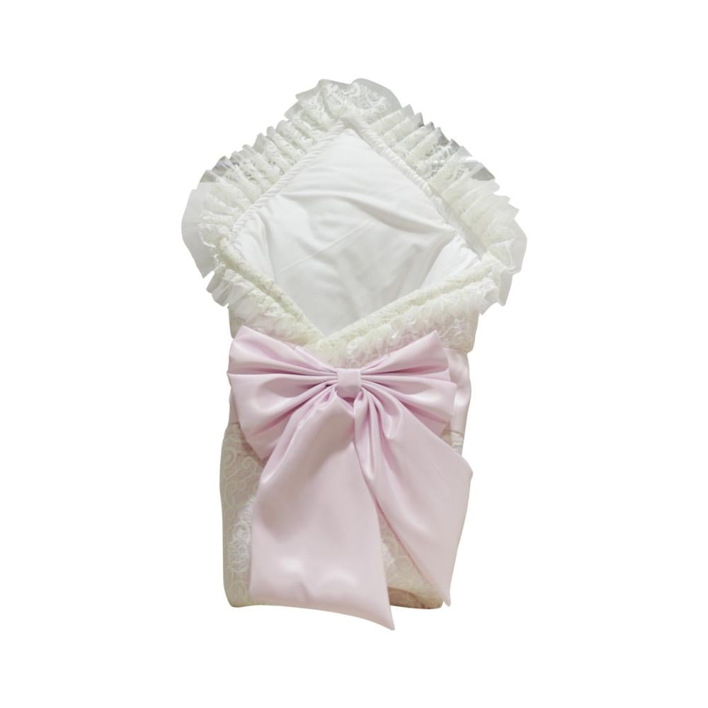 مدس طفل باللون الأبيض مزود بفيونكة وردي أنيقة