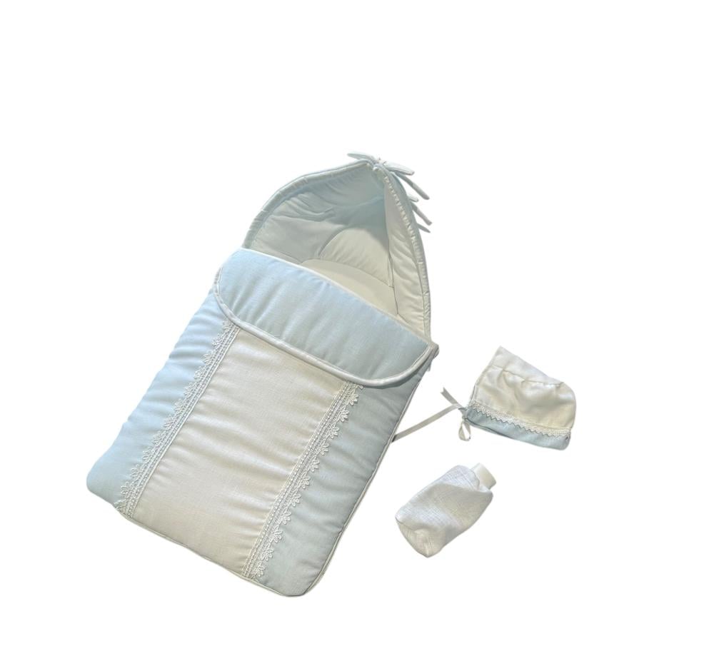 أضيفي لمسة راقية وناعمة على لحظات مولودك مع مدس مواليد أزرق من بامو بيبي. مصمم بخامة قطنية ناعمة وتطريز أنيق، يمنح هذا المدس مولودكِ إحساسًا بالدفء والحنان، بينما تضيف القبعة الفرنسي لمسة جمالية عملية.